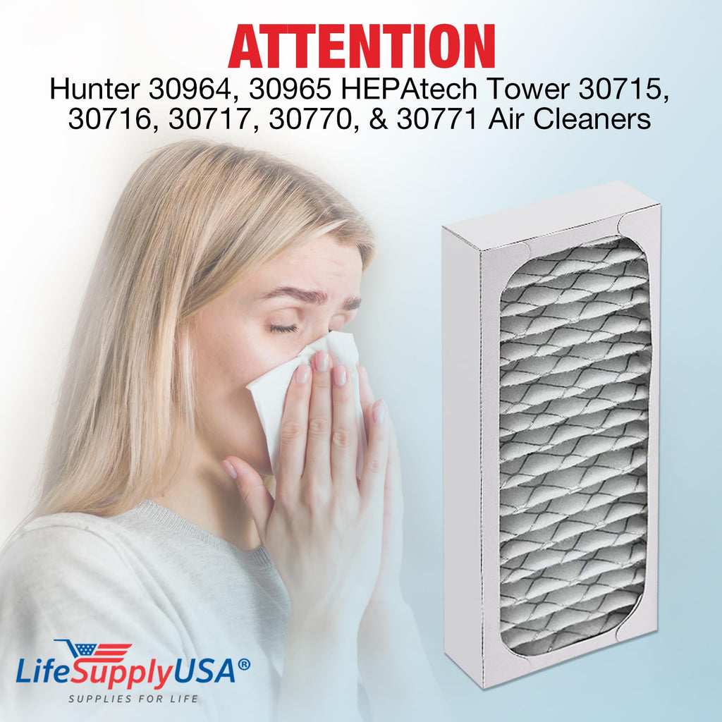 True HEPA Filter Replacement Compatible with Hunter HEPAtech Tower 30964, 30965, 30715, 30716, 30717, 30770, 30771 Air Purifier by LifeSupplyUSA