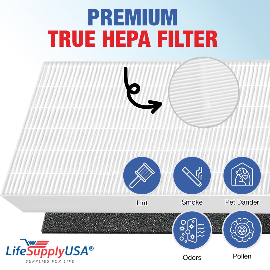 Replacement air purifier filter by LifeSupplyUSA, designed to help maintain cleaner indoor air. Sealed for freshness and durability, this filter provides high-quality filtration to improve air quality in your home or office.