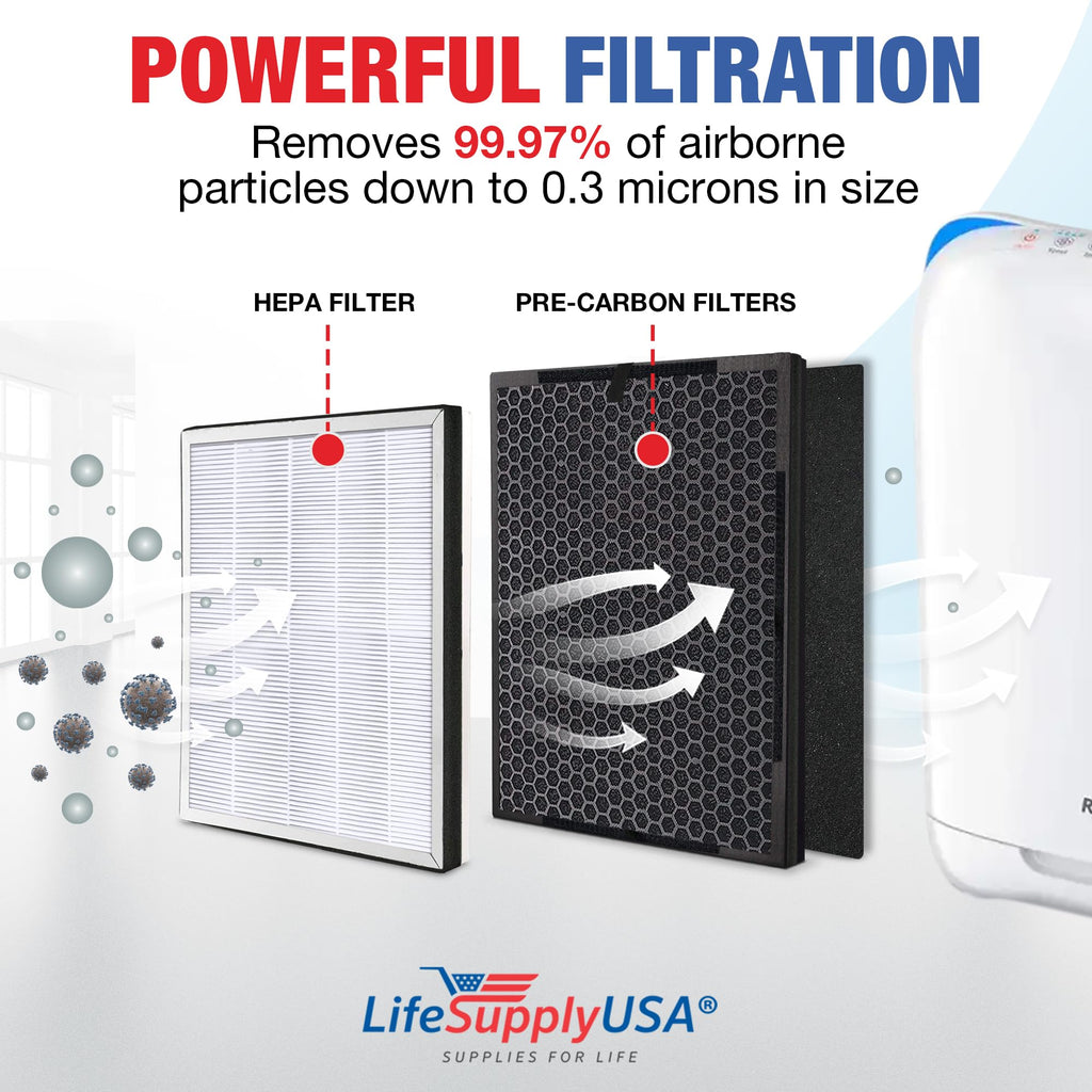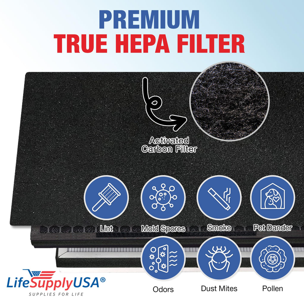 3-in-1 True HEPA Air Cleaner Replacement Filter + Pre-Filter + Carbon Filter Compatible with Renpho RP-AP001, RP-AP001S, RP-AP002 Air Purifiers by LifeSupplyUSA
