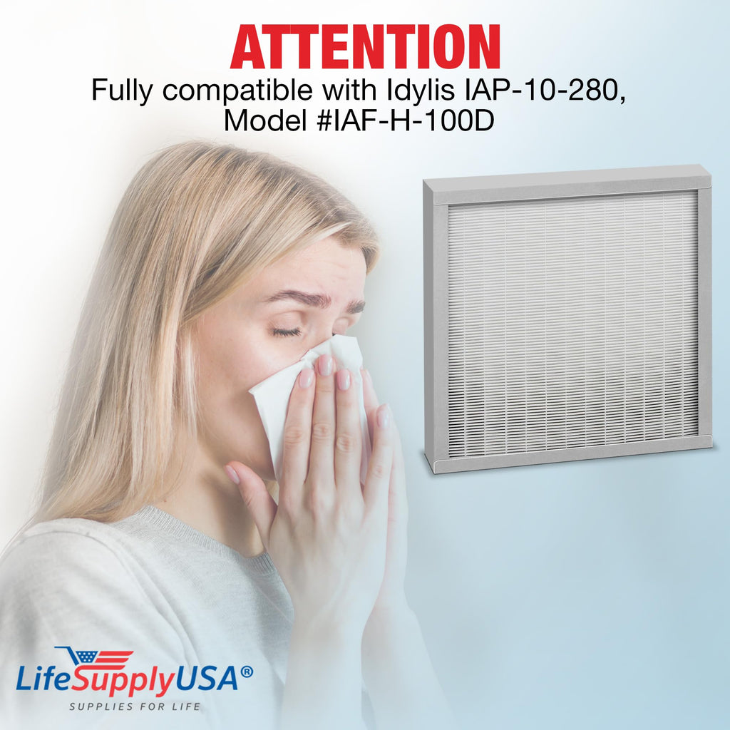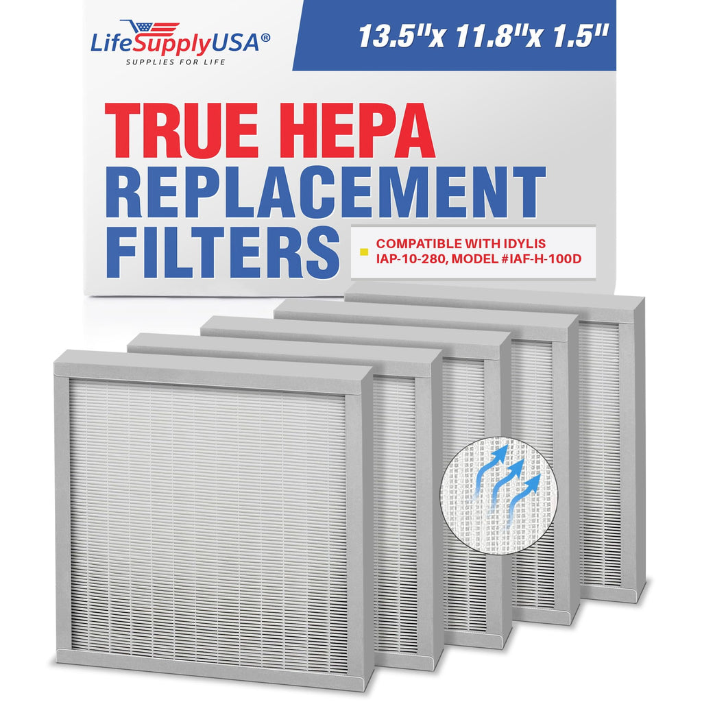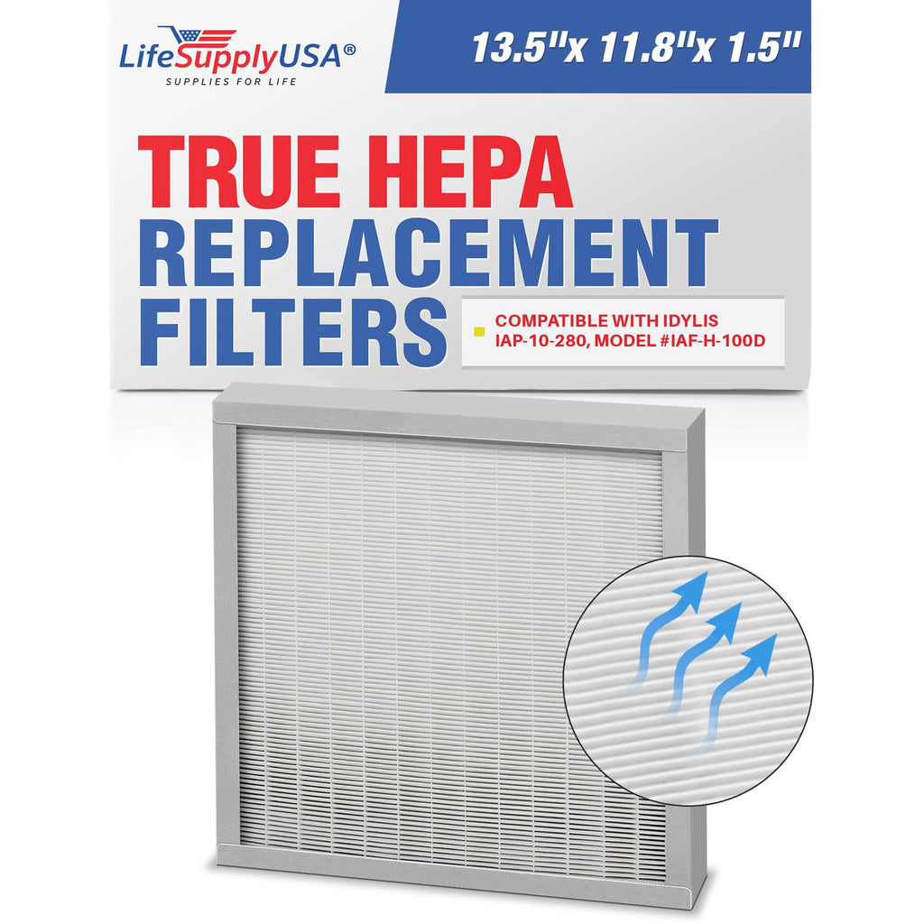 - Excellent Value: Replacement filter for air purifiers, effectively filters air particles for healthier living. Dimensions: 12" x 2" x 14" inches,Compatibility: Compatible with Idylis IAP-10-280, # IAF-H-100D. Not OEM; exclusively by LifeSupplyUSA.,Quality HEPA Filtration: High-Efficiency Particulate Air (HEPA) design filters fine particles and irritants.,Professional Grade: LifeSupplyUSA Air Purifier Filters are durable and efficient, ensuring maximum airflow and device protection.,Easy Installation: Tool-free; replace every 6 months (depending on air quality and use) for optimal performance.
