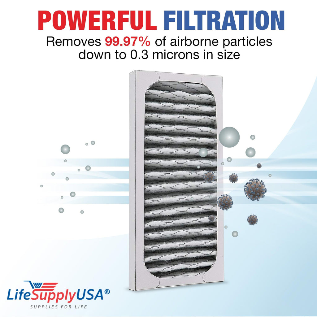 - Excellent Value: Replacement filter for air purifiers, effectively filters air particles for healthier living. Dimensions: 10.28" x 4.17" x 1.42" inches,Compatibility: Compatible with Hunter 30912 30917 30027 30028 30030 300705 36027 37027. Not OEM; exclusively by LifeSupplyUSA.,Quality HEPA Filtration: High-Efficiency Particulate Air (HEPA) design filters fine particles and irritants.,Professional Grade: LifeSupplyUSA Air Purifier Filters are durable and efficient, ensuring maximum airflow and device protection.,Easy Installation: Tool-free; replace every 6 months (depending on air quality and use) for optimal performance.