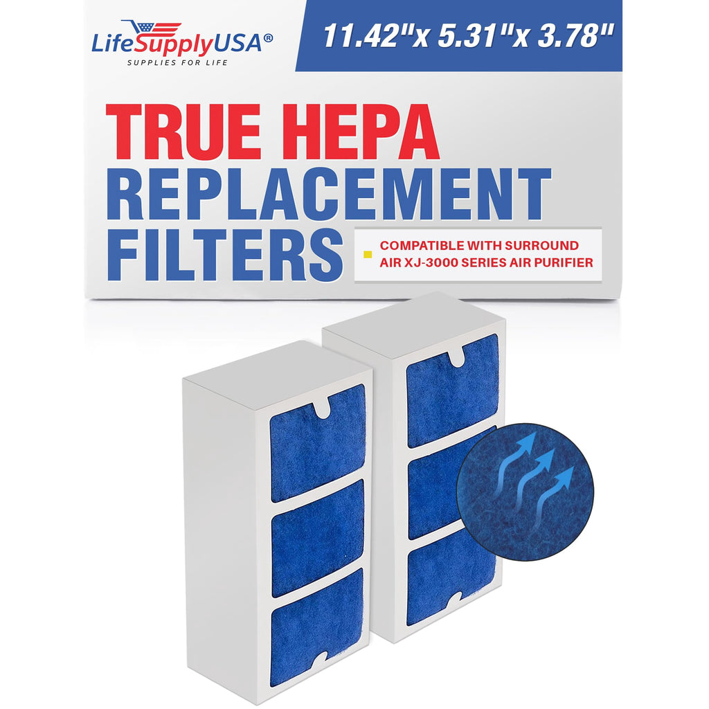 - Excellent Value: Replacement filter for air purifiers, effectively filters air particles for healthier living. Dimensions: 11.42" x 5.31" x 3.78" inches,Compatibility: Compatible with Surround Air XJ-3000 Series. Not OEM; exclusively by LifeSupplyUSA.,Quality HEPA Filtration: High-Efficiency Particulate Air (HEPA) design filters fine particles and irritants.,Professional Grade: LifeSupplyUSA Air Purifier Filters are durable and efficient, ensuring maximum airflow and device protection.,Easy Installation: Tool-free; replace every 6 months (depending on air quality and use) for optimal performance.