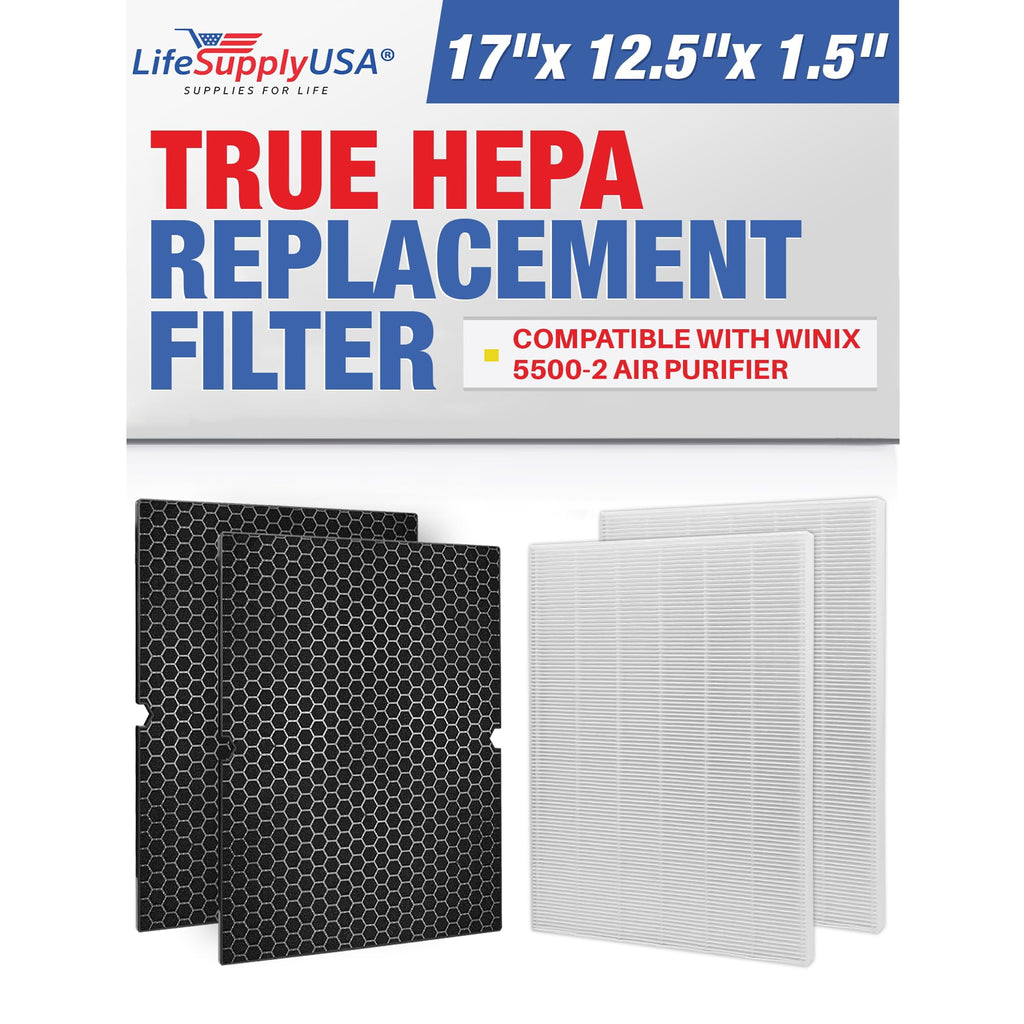 Breathe easier with the LifeSupplyUSA True HEPA Filter Replacement specifically designed for Winix 5500-2 air purifier and compatible with multiple Winix models including 5500, 5510, 5520, and AM80. This premium Winix filter H (116130) ensures your PlasmaWave air purifier continues to perform at its peak efficiency. Our replacement filter combines advanced filtration technology with superior construction to effectively capture 99.97% of airborne contaminants. The filter works seamlessly with your Winix air purifier. Designed as a direct replacement for the Winix air purifier filter replacement 5500-2 and other compatible models, this filter installs quickly and easily without requiring any special tools. Each filter is individually sealed for freshness, ensuring maximum effectiveness right out of the package. Regular replacement of your Winix air filter every 3-6 months (depending on usage and air quality conditions) helps maintain optimal air purification performance. By choosing our high-quality replacement filters, you're investing in cleaner air and extending the life of your valuable air purifier. LifeSupplyUSA is committed to providing premium quality replacement parts that meet or exceed original manufacturer specifications. Our Winix replacement filter delivers the performance you expect at a value you'll appreciate.