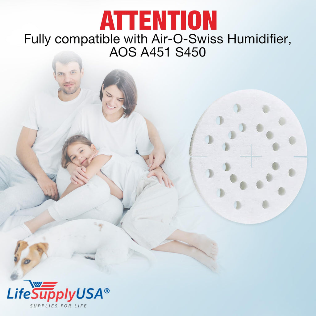 Humidifier Filter Replacement Anti-Mineral Pad Compatible with Air-O-Swiss Humidifier, AOS A451 S450 (6-Pack) by LifeSupplyUSA