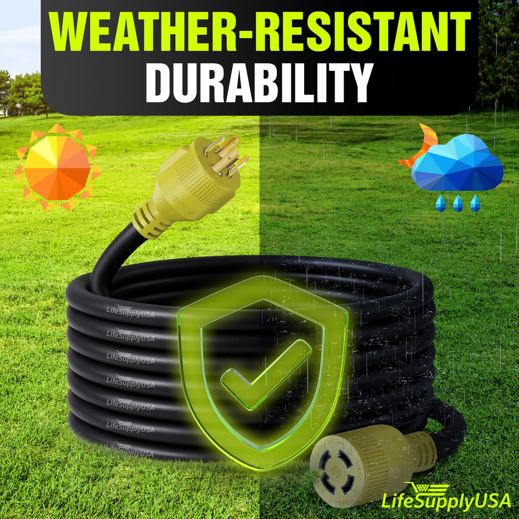 50-Foot Long Reach: With a 50-foot length, this extension cord provides ample reach to connect your generator to power tools or home appliances, making it ideal for emergency power, job sites, or RVs.