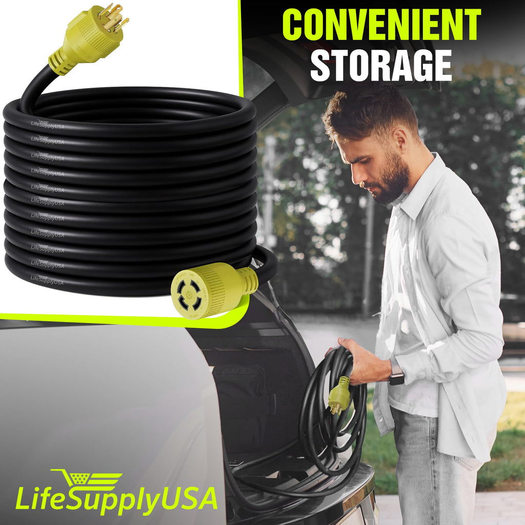100ft Generator Extension Cord 30 AMP 4-Prong (L14-30P / L14-30R) - 10AWG4 125/250V STW - Hook and Loop Strap ETL Listed by LifeSupplyUSA