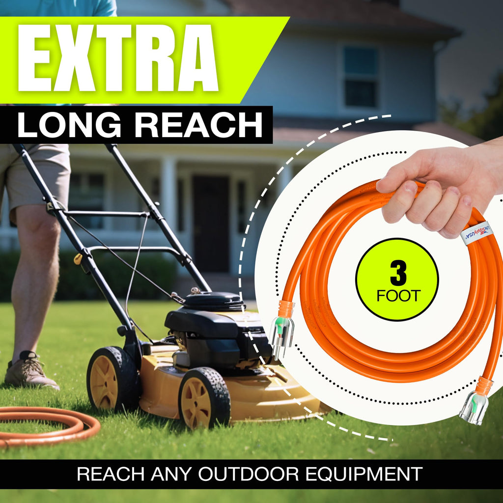 POWERFUL: This 3FT, 14 Gauge 3-prong SJTW, Orange extension cord is designed for extra safety and durability, The cable extension electrical cord supports 15 AMP, 125 Volts, and up to 1875 Watts, ensuring robust performance for high-demand equipment, this 1 Pack embodies reliability, quality, and the grounded power to handle your most challenging projects with ease.