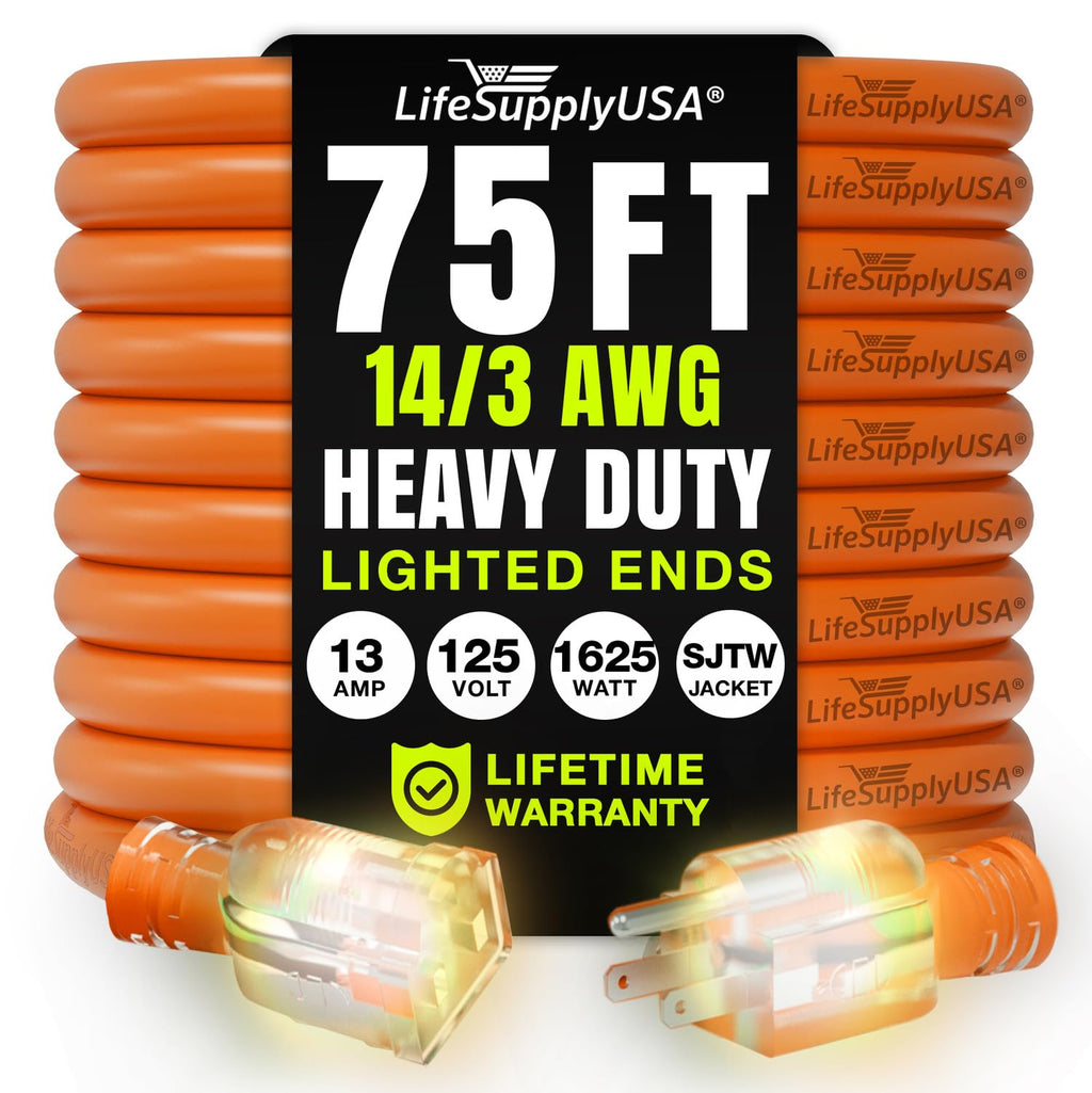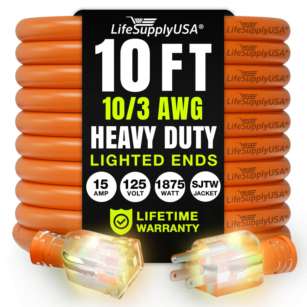 LONG LASTING PERFORMANCE: Engineered to endure harsh conditions, this heavy duty extension cord remains resilient against extreme temperatures. With a superior indoor / outdoor extension cord waterproof design, it offers unmatched durability and reliability for home, work, or construction needs. Ensure long lasting performance with LifeSupplyUSA extension cords in any setting.