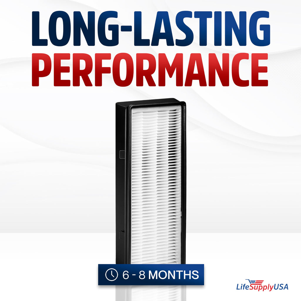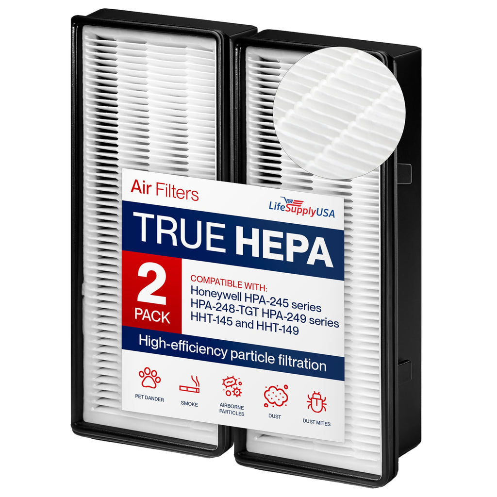 - Enhance your indoor air quality with the Filter N HEPA Filter Replacement by LifeSupplyUSA, specifically engineered for compatibility with Honeywell HPA and HHT Series air purifiers. This high-efficiency particulate air (HEPA) filter is a essential component for maintaining a cleaner and healthier environment in your home or office. Key Benefits and Features: - Professional Grade Filtration: Designed to capture up to 99.97% of microscopic airborne particles as small as 0.3 microns, including dust, pollen, pet dander, and smoke. - Odor and Irritant Removal: The advanced design helps eliminate common household odors from cooking and pets, while also trapping fine particles and irritants. - Durable and Efficient: Built for long-lasting performance, these filters ensure maximum airflow to protect your device and maintain peak purification efficiency. - Easy, Tool-Free Installation: Simply remove your old filter and slide in the replacement for an instant refresh. For optimal results, it is recommended to replace the filter every 6 months depending on usage and local air quality. - Versatile Options: To suit your maintenance schedule, this high-performance filter is available in various pack sizes, including convenient multi-packs for long-term air quality management.Experience a more inviting and breathable living space with the reliable and cost-effective filtration solutions from LifeSupplyUSA. Compatible models include Honeywell HPA-245 series, HPA-248-TGT, HPA-249 series, HHT-145, and HHT-149.